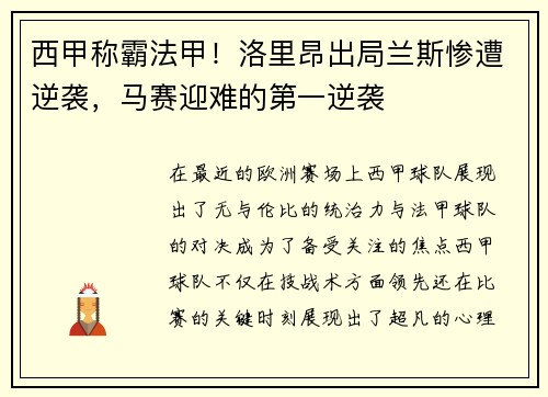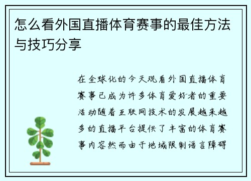 在欧洲杯的舞台上,足球不仅是一项运动,更是一种文化的象征。CCTV5作为国内权威的体育频道,全面直播了本届欧洲杯的精彩赛事,为球迷们带来了无与伦比的观赛体验。本文将从赛事回顾、球队表现、球员分析和观众反响四个方面,对欧洲杯的精彩赛事进行深入分析,旨在让读者尽享这场足球盛宴的魅力。 1、赛事回顾 本届欧洲杯的赛事可谓精彩纷呈,各支球队在赛场上展现了高水平的竞技状态。小组赛阶段,许多球队都表现出了强...